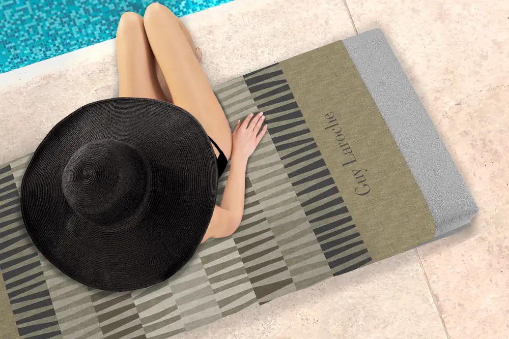 Πετσέτα θαλάσσης / πισίνας από την printed σειρά “Velour”, διαχρονικά σχέδια και ζωντανά χρώματα με την υπογραφή της Guy Laroche Paris. Διάσταση 100?175εκ.