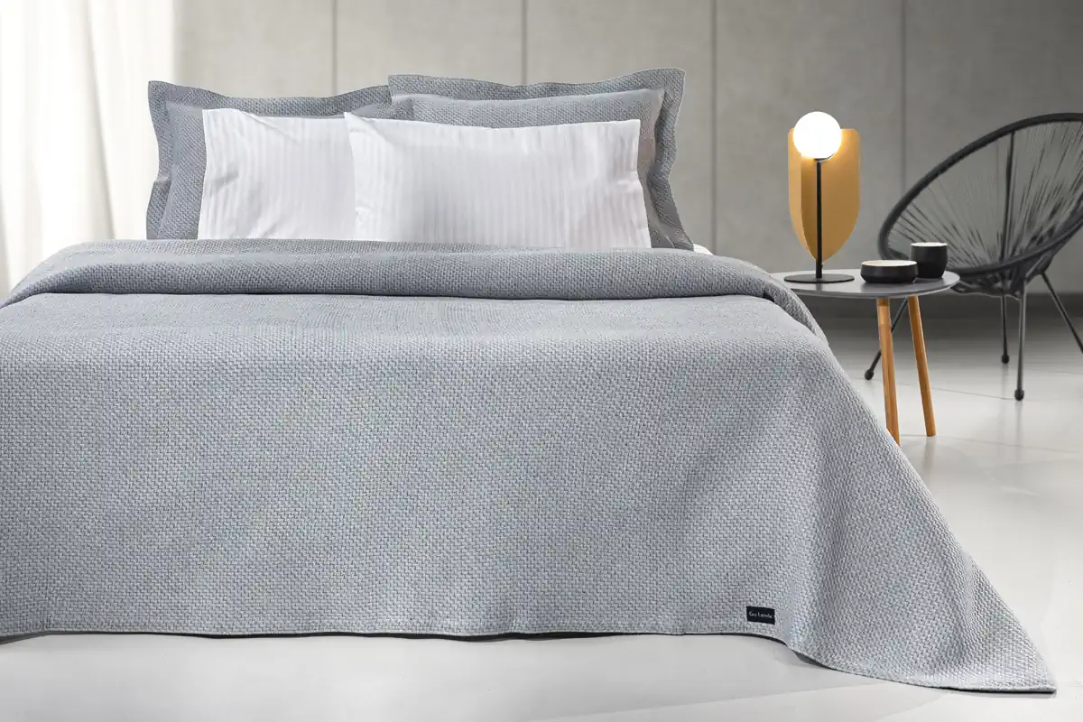 Ανοιξιάτικη κουβέρτα υπέρδιπλη, κατάλληλη για ελαφρύ σκέπασμα ή για κάλυμμα του κρεβατιού. Γκρι, 245 x 260 εκατοστά.