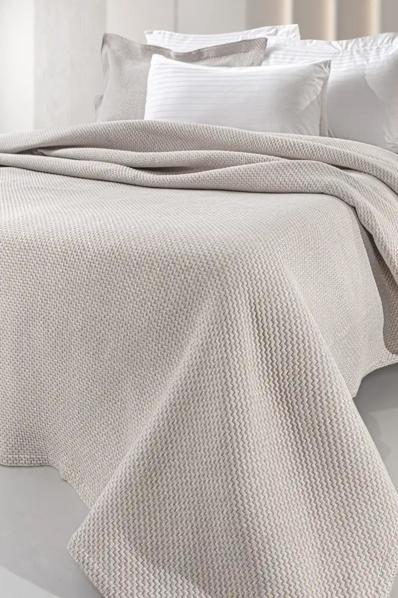 Ανοιξιάτικη κουβέρτα υπέρδιπλη, κατάλληλη για ελαφρύ σκέπασμα ή για κάλυμμα του κρεβατιού. Μπεζ, 245 x 260 εκατοστά.