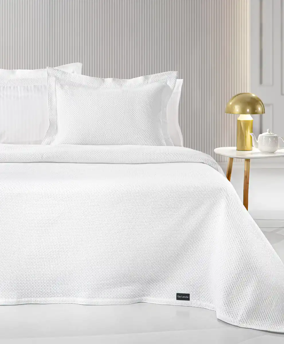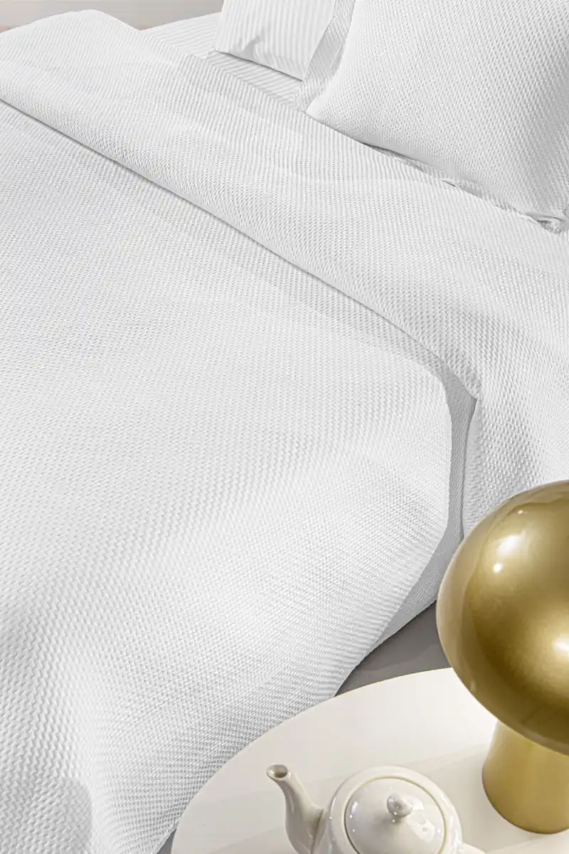 Ανοιξιάτικη κουβέρτα υπέρδιπλη, κατάλληλη για ελαφρύ σκέπασμα ή για κάλυμμα του κρεβατιού. Λευκή, 245 x 260 εκατοστά.