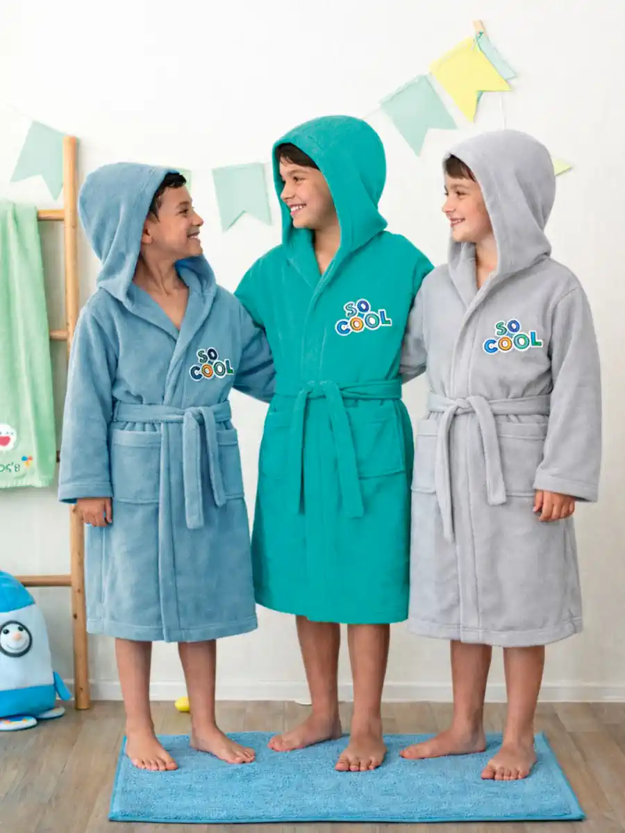 Μπουρνούζι Kids Bath COOL με κεντητές παιδικές παραστάσεις από 100% βαμβακερό ύφασμα με κέντημα 380 γραμμαρίων ανά m².