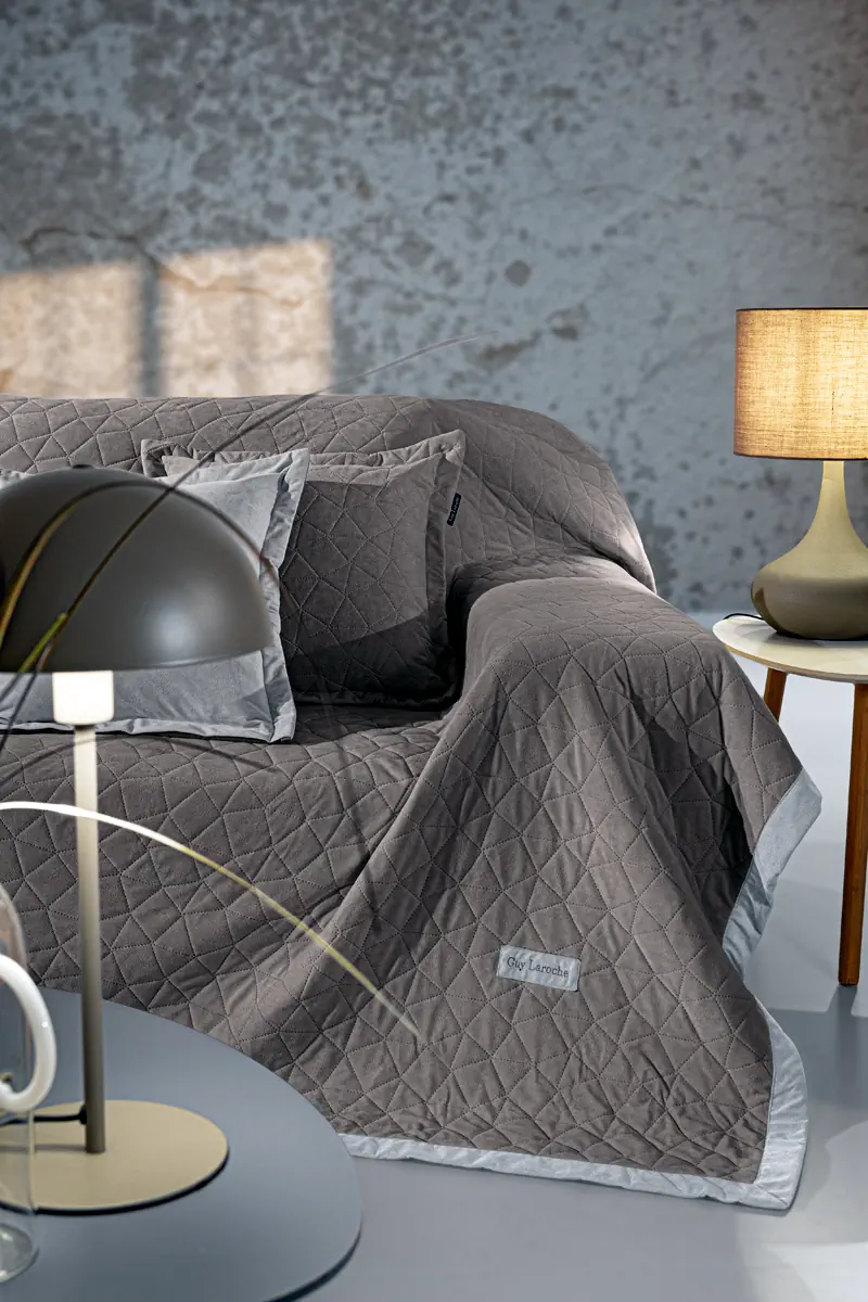 Ριχτάρι καναπέ και διακοσμητική μαξιλαροθήκη με διακριτικό σχέδιο από την εταιρεία Guy Laroche Paris. Είναι κατασκευασμένα από 100% polyester με βελούδινη υφή που τα καθιστά ανθεκτικά και μαλακά. Διαθέτουν αντιολισθητική επένδυση στην πίσω πλευρά (antipilling) που δεν κομπιάζει. Ιδανικό σετ για να στολίσετε με στυλ και ποιότητα το καθιστικό σας.