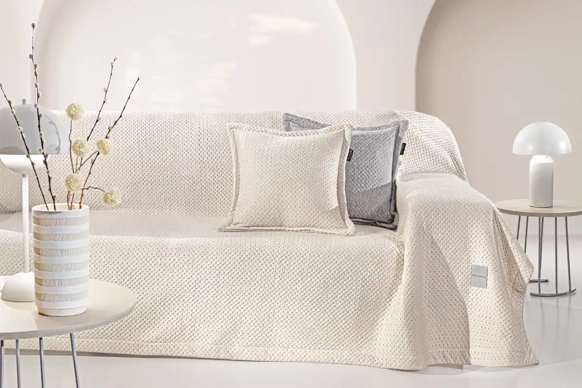 Ριχτάρι καναπέ από την Guy Laroche Paris, σχεδιασμένο για απόλυτη προστασία και άνεση όλο τον χρόνο, με κομψό και σύγχρονο ύφος που ταιριάζει σε κάθε καθιστικό.Κατασκευασμένο από 100% microfiber καστόρι (suede), διαθέτει τεχνολογία cooling που διατηρεί τη δροσιά του περιβάλλοντος, προσφέροντας ευχάριστη και φρέσκια αίσθηση στην καθημερινή χρήση.Χάρη στην τριπλή επεξεργασία προστασίας (fluid proof), είναι αδιάβροχο, αλέκιαστο και ανθεκτικό σε λάδια και σκόνη, ενώ παράλληλα η αντιολισθητική του επιφάνεια εξασφαλίζει σταθερή εφαρμογή χωρίς μετακινήσεις. Καθαρίζεται εύκολα και διατηρεί την άψογη εμφάνισή του στο χρόνο.Ξεχάστε τις περιττές συσκευασίες! Το ριχτάρι τοποθετείται μέσα σε μία ασορτί διακοσμητική θήκη, η οποία, αφού αφαιρεθεί το ριχτάρι, μετατρέπεται σε ένα κομψό και πρακτικό μαξιλάρι για τον καναπέ σας.Συνδυάζεται ιδανικά με τις υπόλοιπες διαστάσεις και τη διακοσμητική μαξιλαροθήκη της σειράς, δημιουργώντας ένα ολοκληρωμένο και κομψό αποτέλεσμα στον χώρο σας.