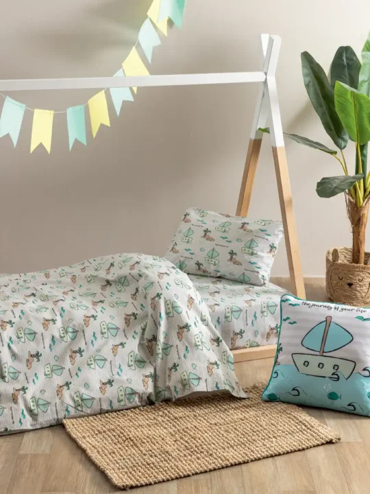 Περιεχόμενα Συσκευασίας: 1 Πανωσέντονο 130×170, 1 Κατωσέντονο με λάστιχο 75×140+15 & 1 Μαξιλαροθήκη 40×50