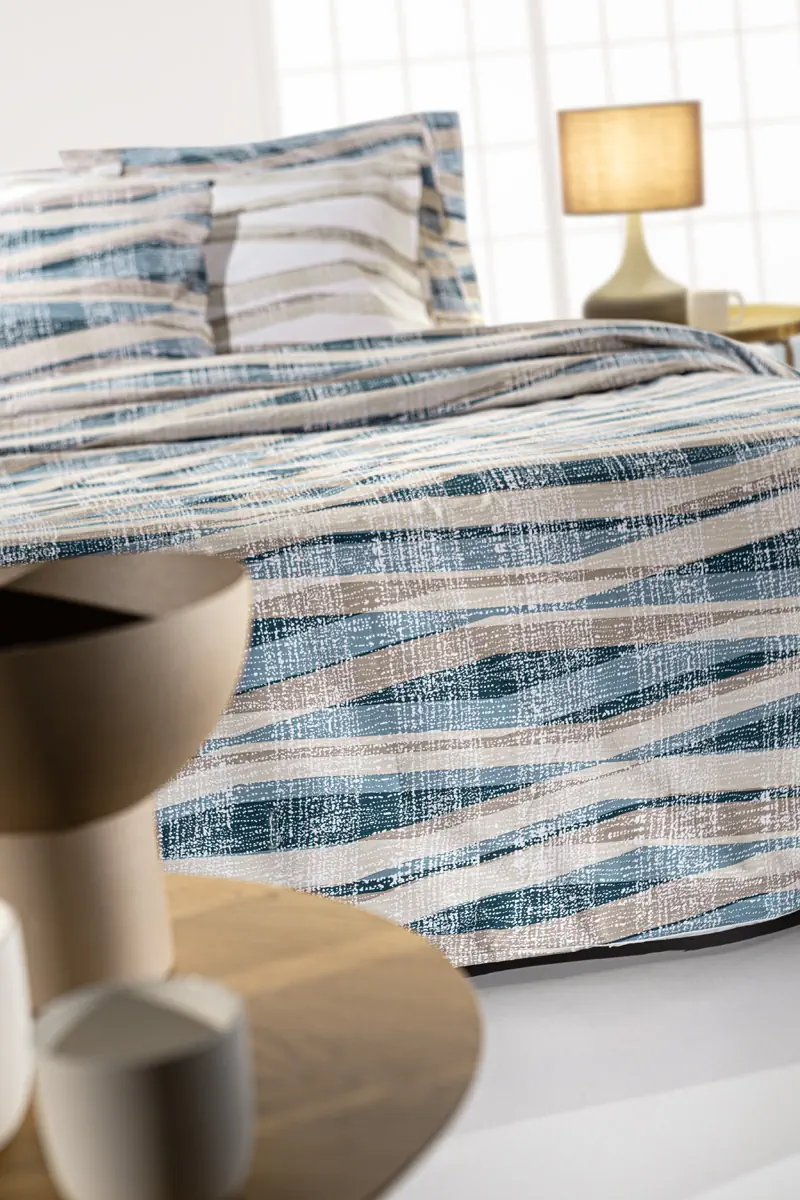 Σετ 4τμχ σεντόνια με μοντέρνο σχέδιο τυπωμένο με την μέθοδο της ψηφιακής εκτύπωσης από την εταιρεία Guy Laroche Paris. Το ύφασμά τους είναι 100% βαμβάκι περκάλι 160 κλωστών, που τα καθιστά ανθεκτικά, απαλά και μαλακά. To σετ περιλαμβάνει ένα πανωσέντονο, ένα κατωσέντονο με λάστιχο και ένα ζεύγος μαξιλαροθήκες διάστασης 50?70εκ. Συνδυάστε τα με τα υπόλοιπα προϊόντα της ίδιας σειράς για ένα ολοκληρωμένο αποτέλεσμα.