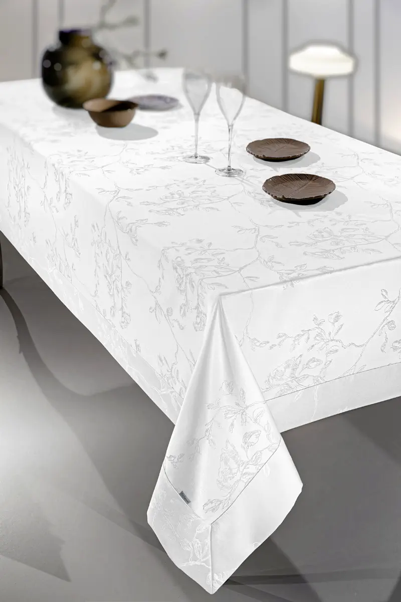 Ένα διαχρονικό τραπεζομάντηλο με jacquard πλέξη και απαλή υφή, σε ουδέτερους χρωματικούς τόνους το οποίο μπορεί να ταιριάξει σε όλες τις τραπεζαρίες.