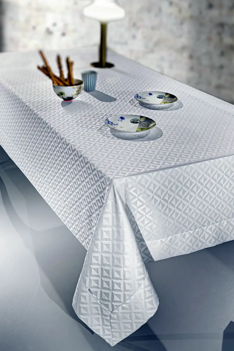 Ένα διαχρονικό τραπεζομάντηλο με jacquard πλέξη και απαλή υφή, σε ουδέτερους χρωματικούς τόνους το οποίο μπορεί να ταιριάξει σε όλες τις τραπεζαρίες.