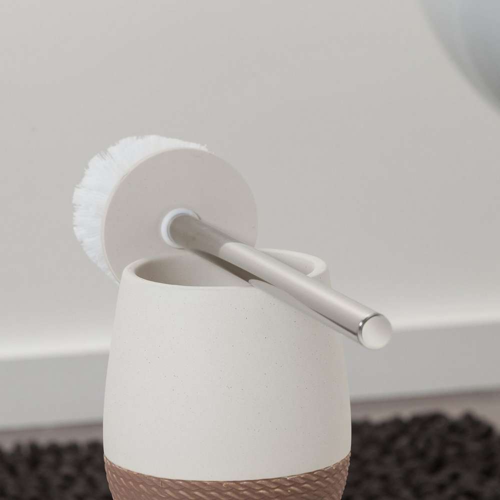 Δύο αποχρώσεις της άμμου σε ένα πιγκάλ τουαλέτας Sealskin. Το κάτω μέρος έχει μια απτή δομή με σπάγκο. Ταιριάζει απόλυτα σε ένα επαρχιακό εσωτερικό.