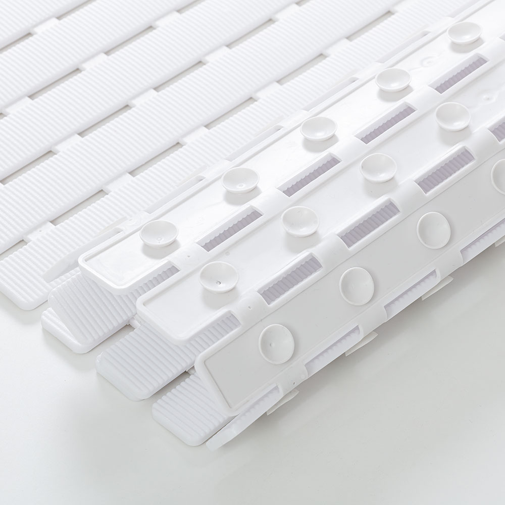Δημιουργήστε ένα ασφαλές μπάνιο με το αντιολισθητικό πατάκι μπάνιου Nora. Ο κομψός σχεδιασμός σε λευκό χρώμα διασφαλίζει ότι το χαλάκι ασφαλείας ταιριάζει σε κάθε μπάνιο. Το χαλάκι 39x69cm προσφέρει αρκετή αντιολισθητική επιφάνεια στον νεροχύτη σας ή στο μπάνιο.